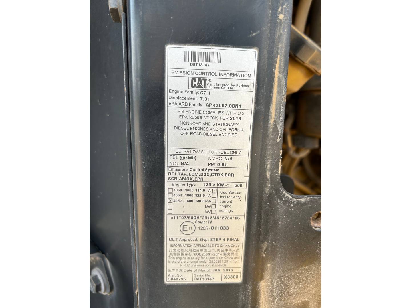 Year: 2016 Hours: 3652 Location: SAN ANTONIO, TX, US Catalog#: CU10234007 Serial#: LTE02193